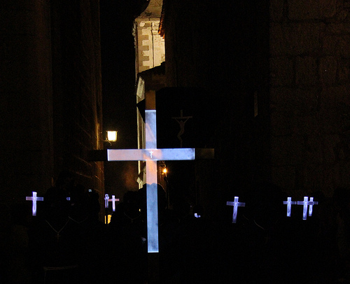 ¿CUÁNDO PROCESIONAMOS? En la madrugada del Jueves al Viernes Santo. Salimos (DM) a las 00:30, volviendo sobre las 3:00 hrs. Gran parte del recorrido es intramuros, en algunos casos por calles nunca antes recorridas, e intentaremos que sea flexible, pero siempre ajustado a una duración aproximada de dos horas o dos horas y cuarto. Cada año dejaremos abierta la posibilidad de salir de un lugar diferente.